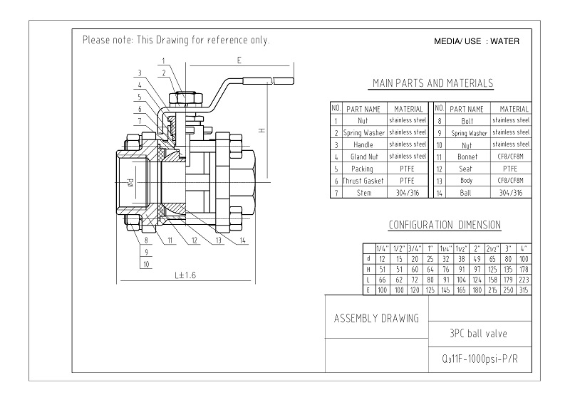 Las válvulas de bola con reborde 3PC son generalmente ligeramente reducidas (o estándar) de diámetro, pueden ser desecho reparables.
