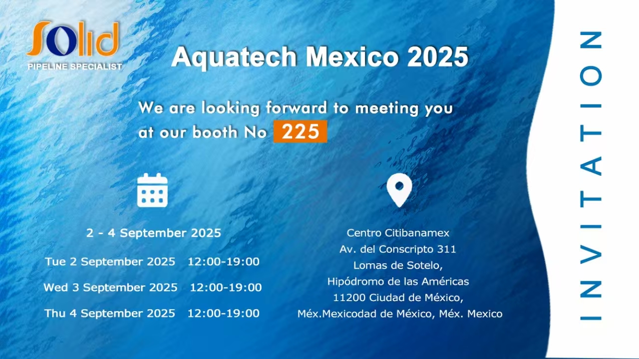 Estamos encantados de anunciar que Solid, líder mundial en soluciones de tuberías, participará en Aquatech México 2025, que tendrá lugar del 2 al 4 de septiembre en el Centro Citibanamex, Ciudad de México. Este evento principal reúne las últimas innovaciones y tecnologías en la industria del agua y las aguas residuales, y no podemos esperar a conectarnos con profesionales de la industria, socios y clientes.